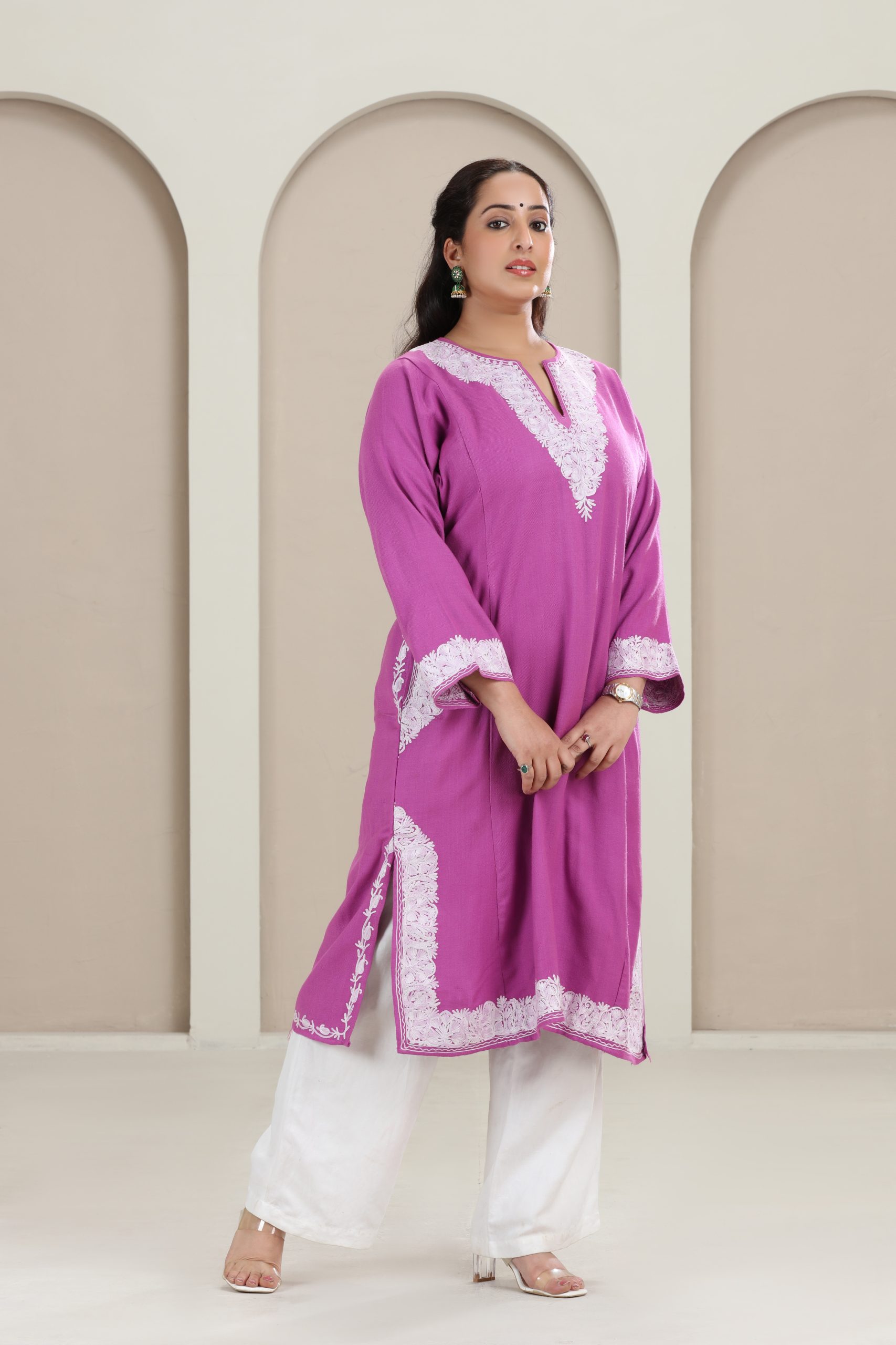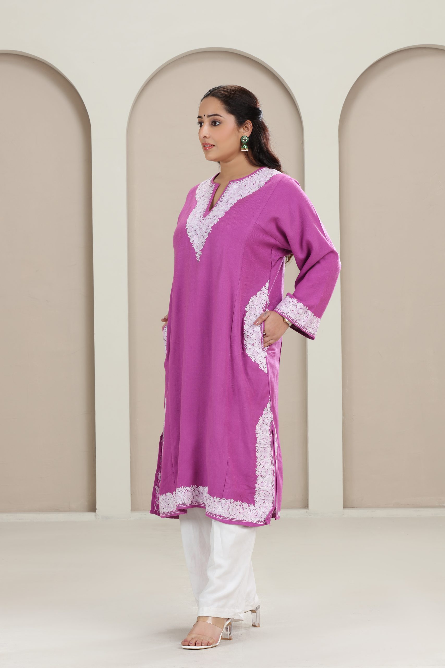 Home » Products » Violet Kashmiri Woollen Pheran with Tila Work