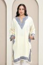 Wrap yourself in timeless elegance with our White Kashmiri Woollen Pheran, beautifully adorned with intricate Tila work. Crafted from soft, warm wool, this traditional silhouette blends heritage charm with modern comfort.